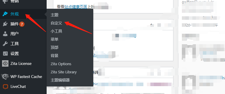 登錄平臺后臺管理 左側菜單——外觀——自定義;進入主題自定義界面